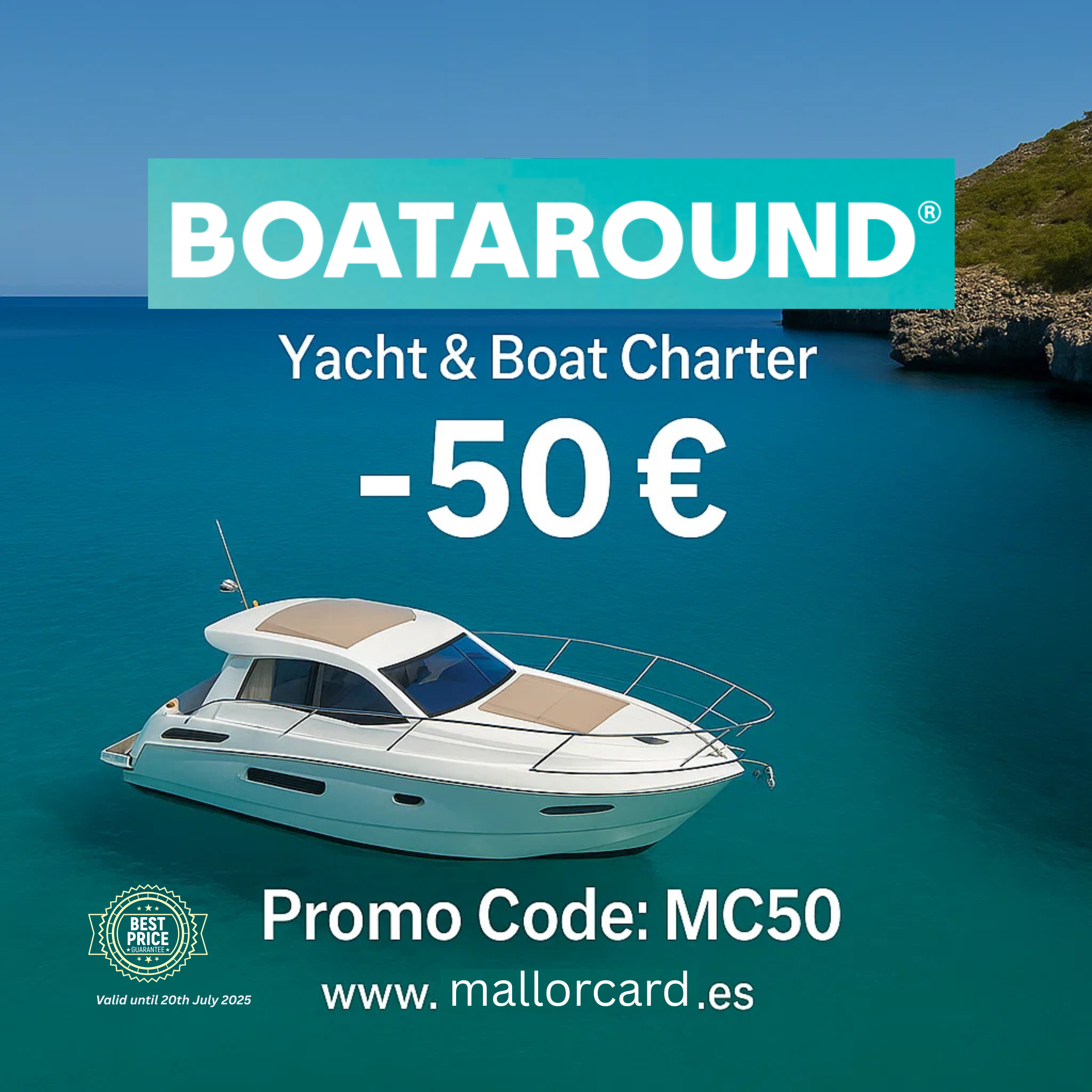 🚤 Exclusive Offer [extended until the beginning of November]: Enjoy 50 Euro off your yacht or boat rental at Boataround using Promo Code MC50 at checkout! Boataround offers a Best Price Guarantee, meaning if you find a cheaper offer elsewhere, Boataround will beat that price. Plus, with Mallorcard’s Boataround promo code MC50, you’ll receive an additional 50 Euro discount, ensuring the best possible value for your Mallorca yacht charter.