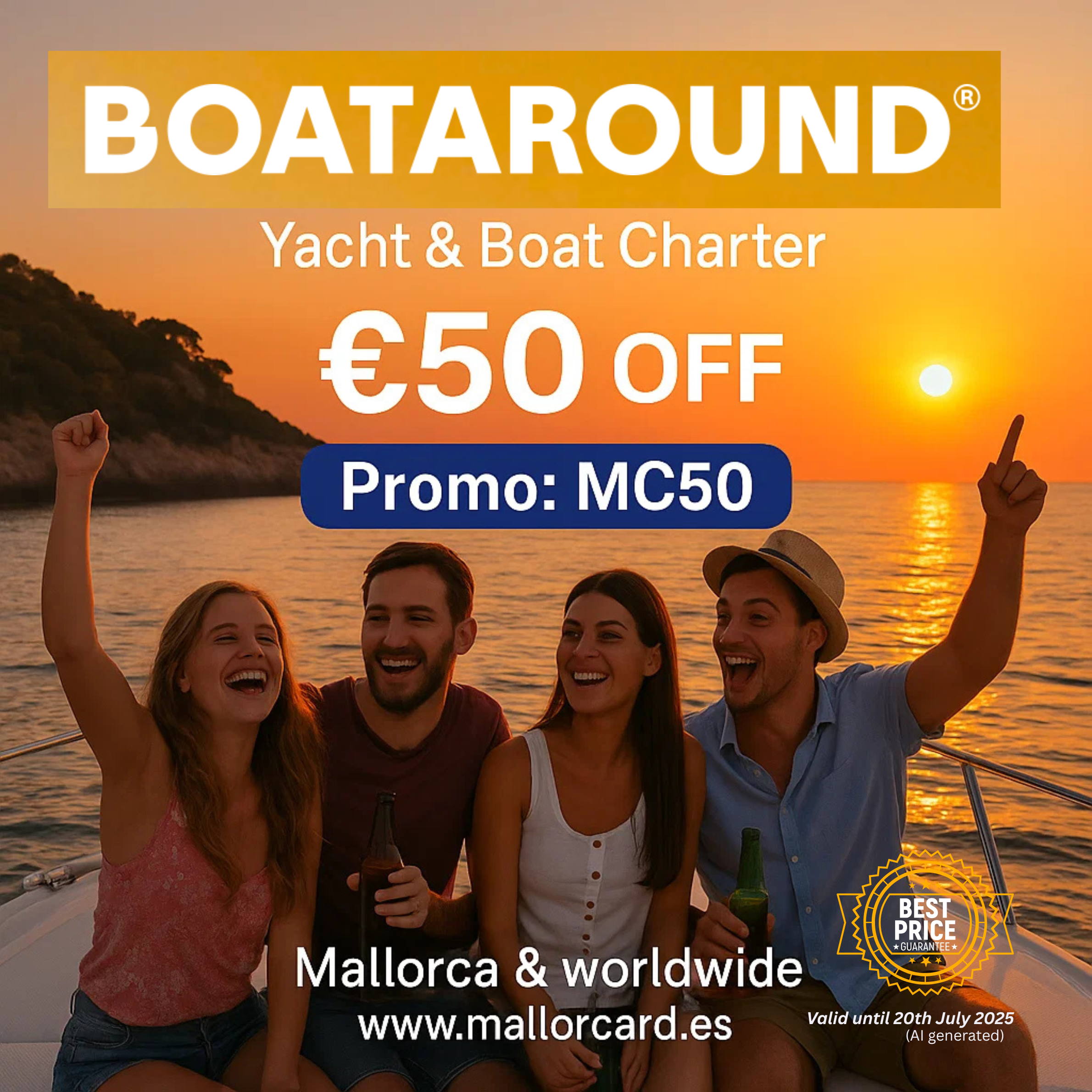 - Promo Code / Offer Boataround: -50 Euro , Promo Code: MC50