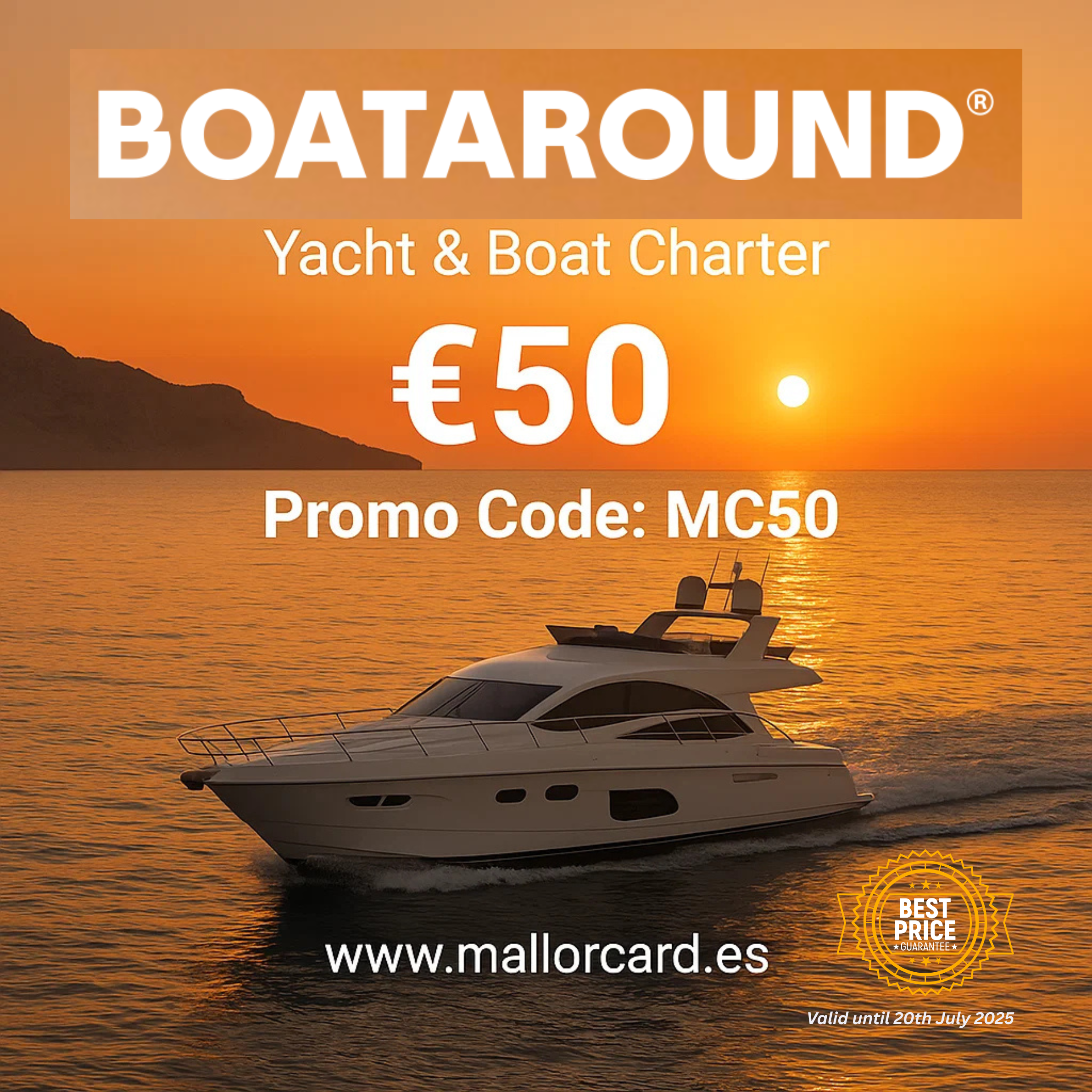 - Promo Code / Offer Boataround: -50 Euro , Promo Code: MC50