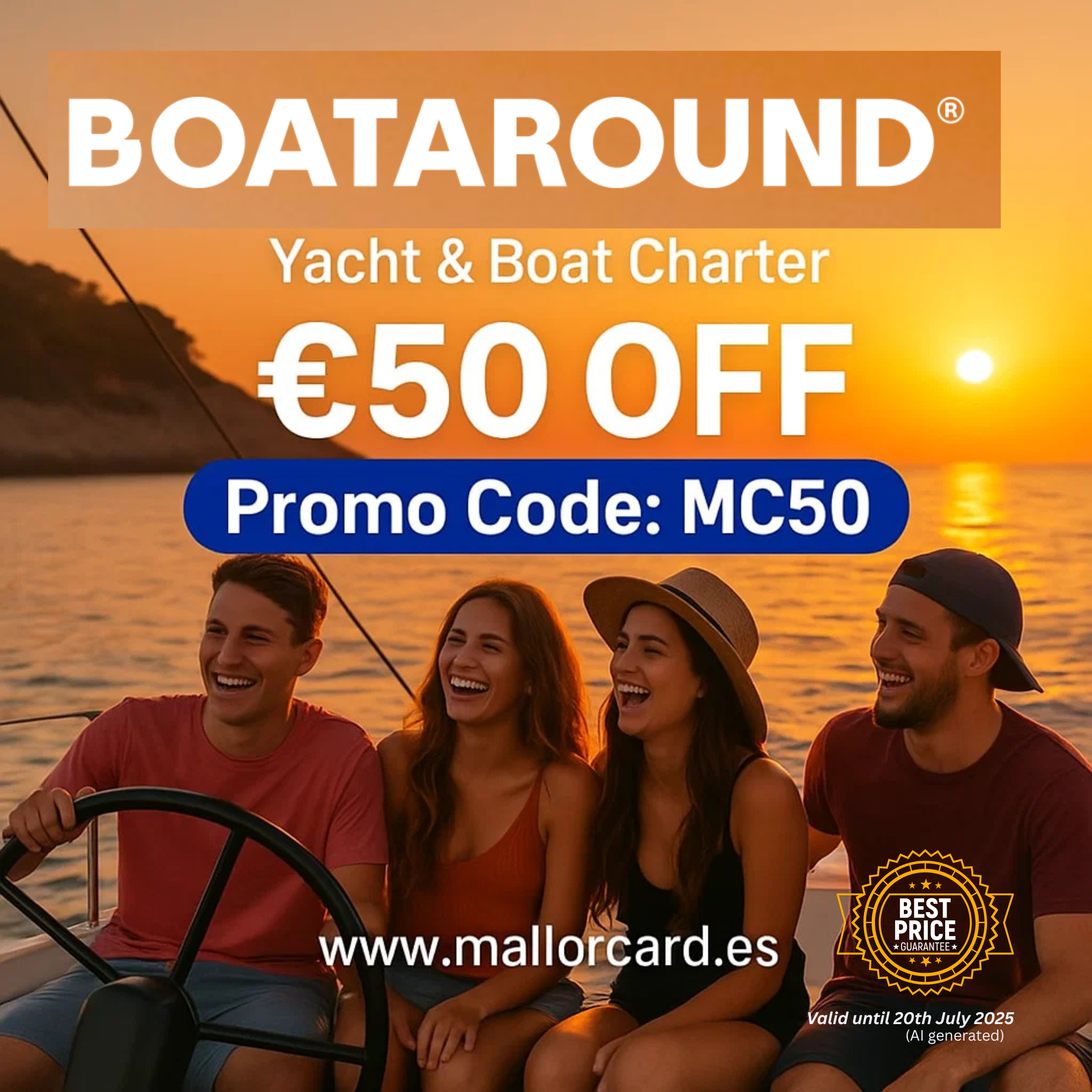- Promo Code / Offer Boataround: -50 Euro , Promo Code: MC50