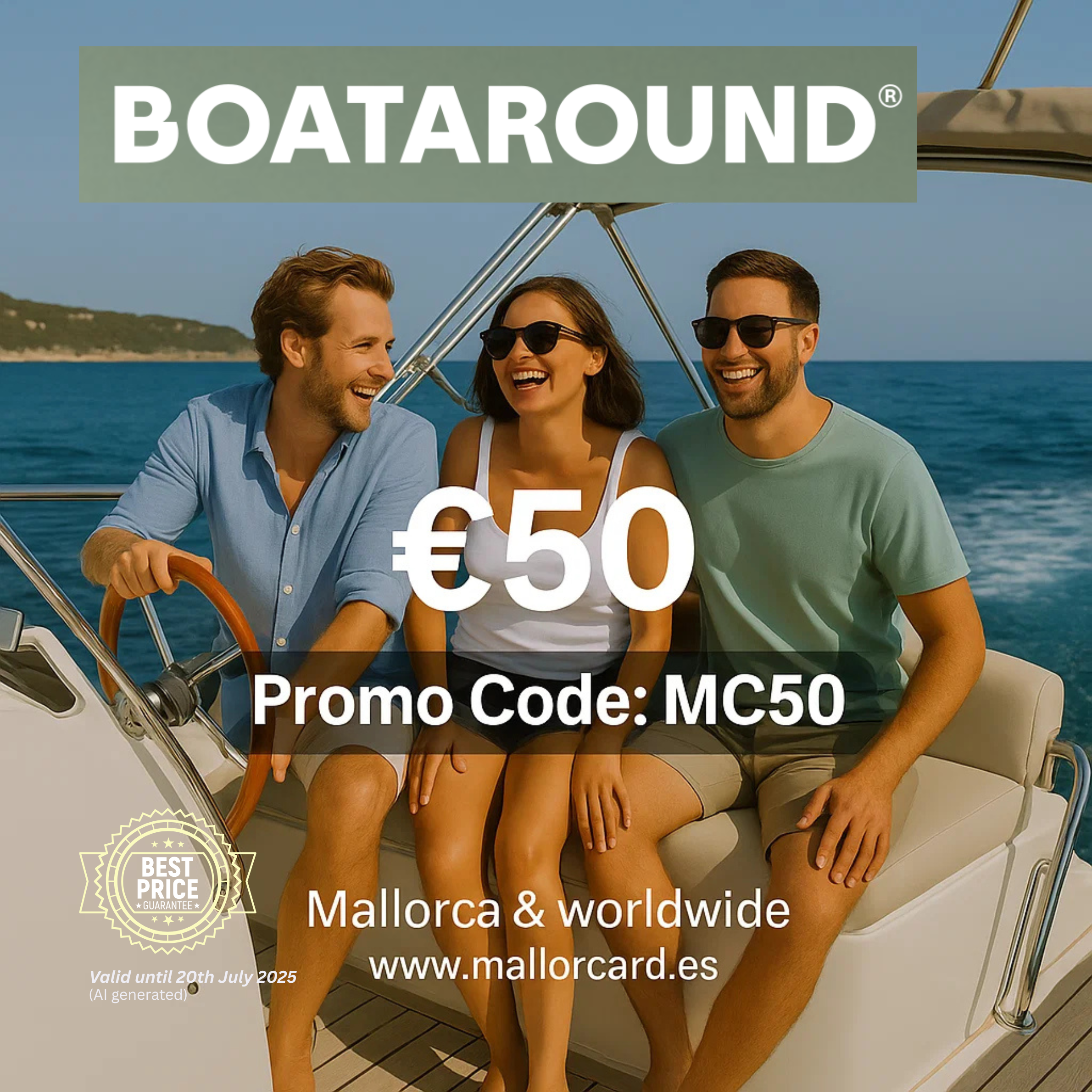- Promo Code / Offer Boataround Promo Code: MC50